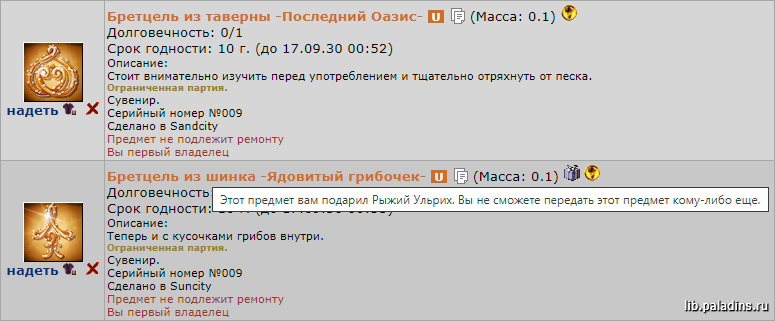 Действие любой печати одинаковое – она делает сувенир подарком от Ульриха и дописывает к нему текст.