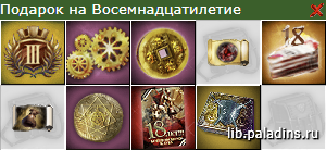 Открыв подарок, игрок обнаружит следующий набор предметов: