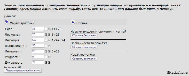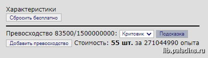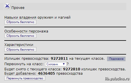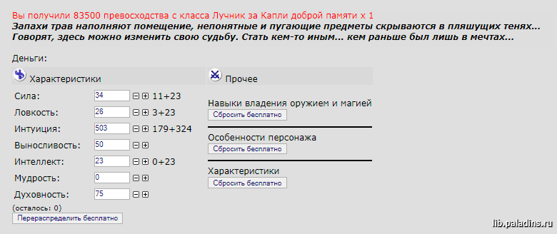 » см. также → Справочник » Персонаж » Превосходство Изменить характеристики, умения и способности персонажа, а также перенести Превосходство можно в Комнате Знахаря.