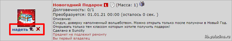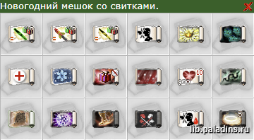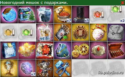 Внутри новогоднего подарка игрок найдет два мешка с предметами и свитками.